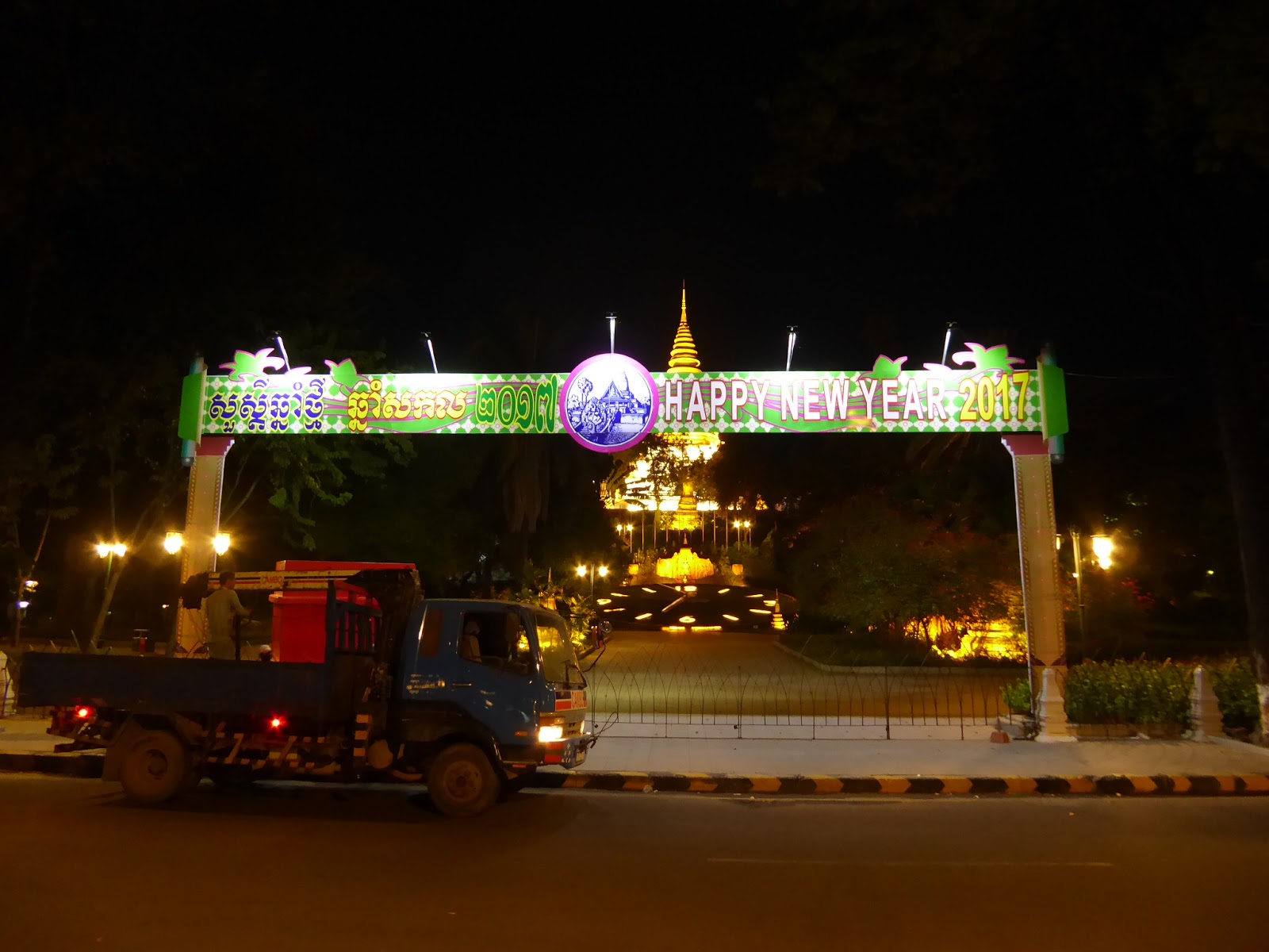 Als letzten Punkt auf meinem Rundgang wollte ich mir noch die bunte Beleuchtung am Vattanac Capital Tower ansehen (die wir bei unserer Ankunft vom Bus aus schon gesehen hatten), aber als ich kurz vor 22 Uhr dort war, war alles schon dunkel, schade.